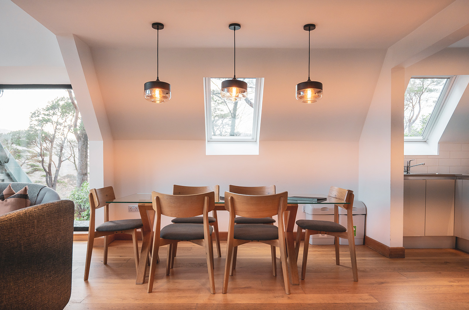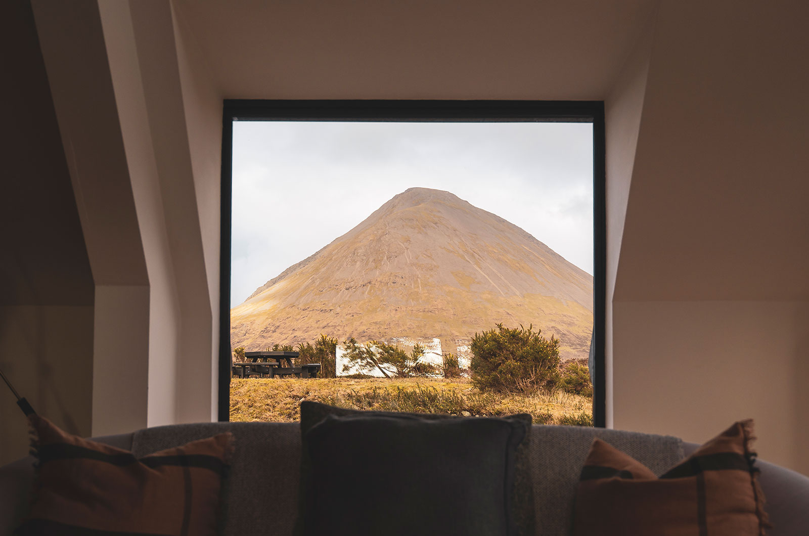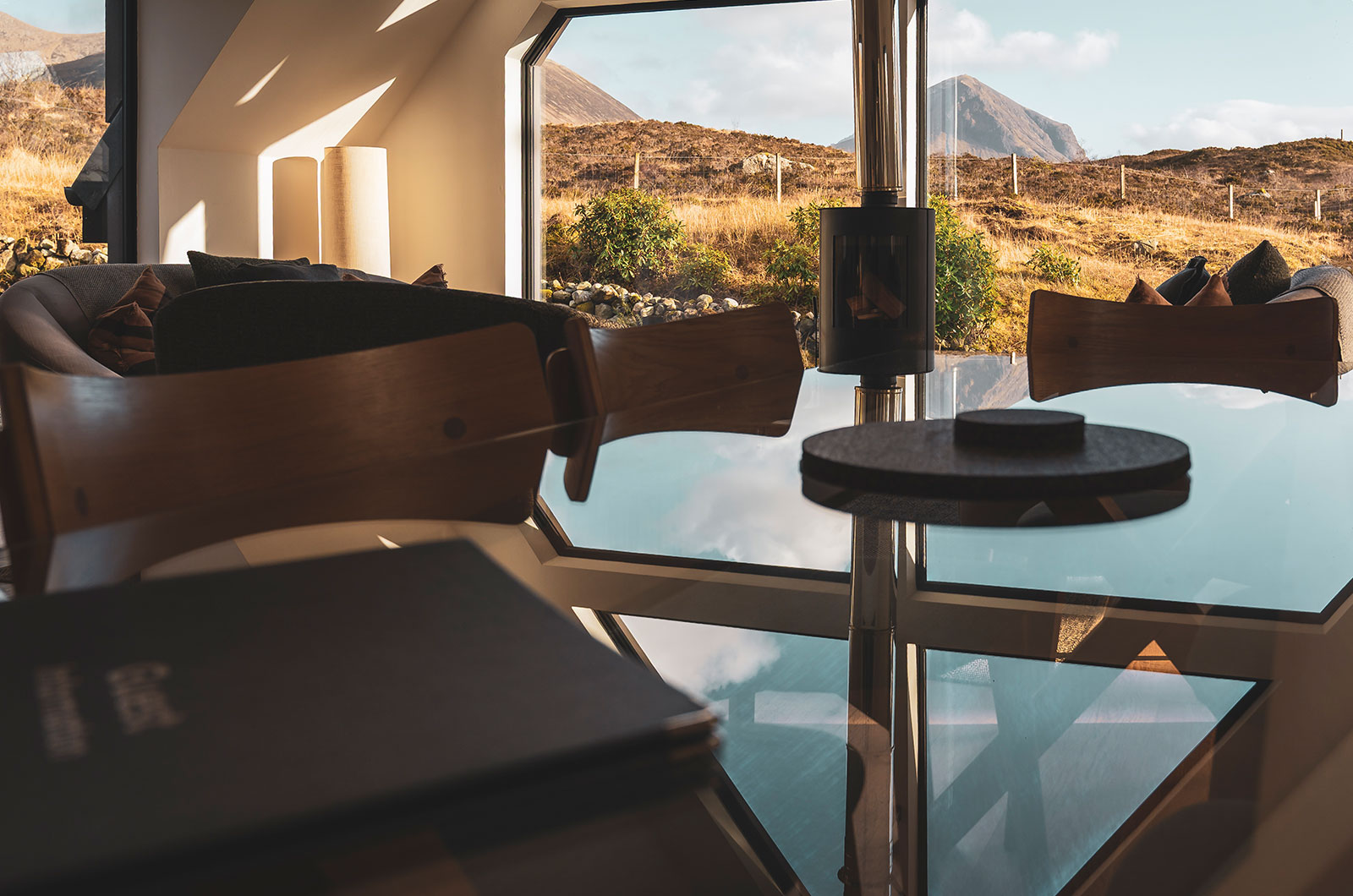 Each Blackhouse has a large open plan kitchen / dining area / living room with large windows framing the massive mountain, river & moorland views. There are two bedrooms and two shower rooms on the downstairs floor along with a large entrance porch / drying area. Upstairs is a further bedroom and a mezzanine area for relaxing.